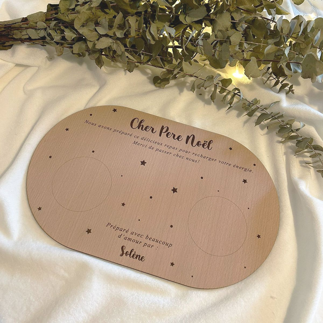 Plateau de Noël en bois personnalisé – Lait et biscuits pour le Père Noël 🎅